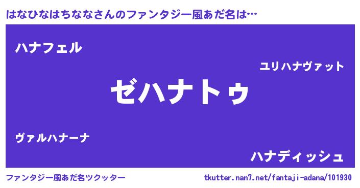 | 男性向けラノベタイトル風あだ名 | 『Re:はなひなはちななから始める異世界生活』 |