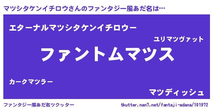 | ポケモン風あだ名 | 『ヒマツシタケンイチロウ』『マツシダネ』 |