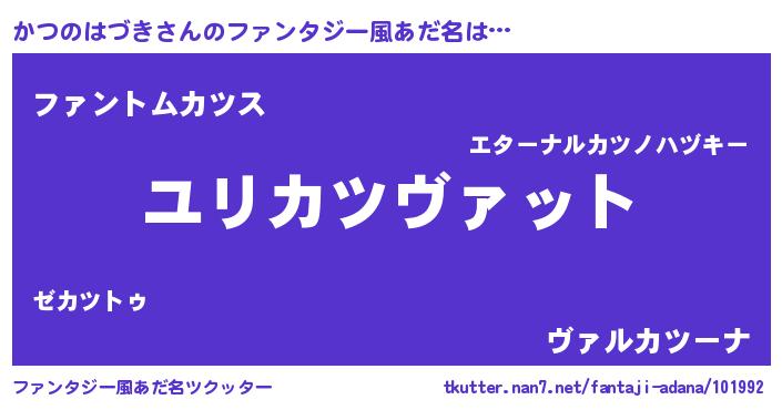 | 男性向けラノベタイトル風あだ名 | 『かつのはづき~年齢イコール彼女いない歴の魔法使い~』 |