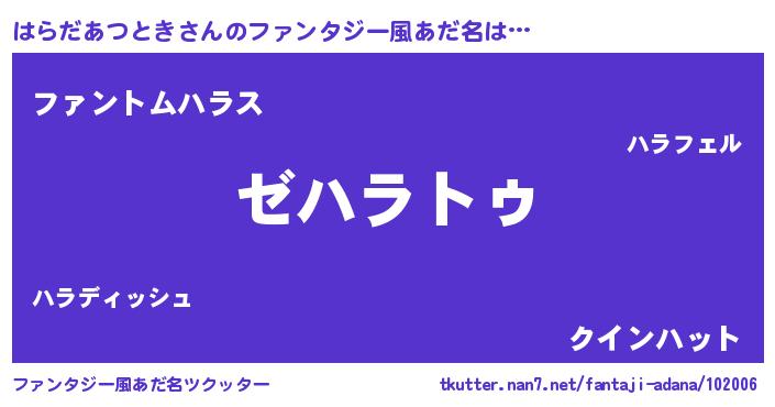 | 女子向けラノベタイトル風あだ名 | 『はらだあつときアンティーク』 |