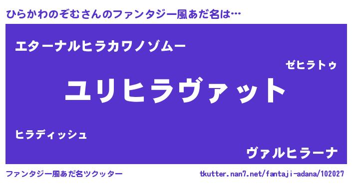 | 男性向けラノベタイトル風あだ名 | 『転生したらひらかわのぞむだった件』 |