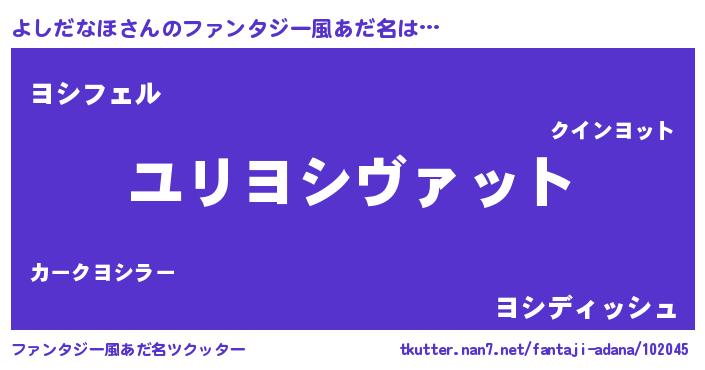 | 男性向けラノベタイトル風あだ名 | 『ヨシダナホスレイヤー』 |