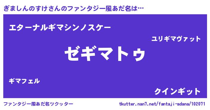 | ヒーロー風カッコイイあだ名 | 『最強戦士ギマシンノスケ』 |
