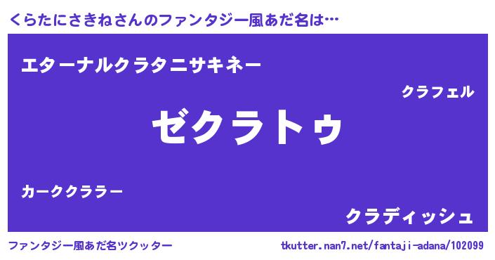 | 意味不明あだ名 | 『自称くらたにさきね』 |