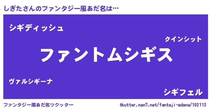 | ヘコむあだ名 | 『しぎぷりん』『しぎた(笑)』 |