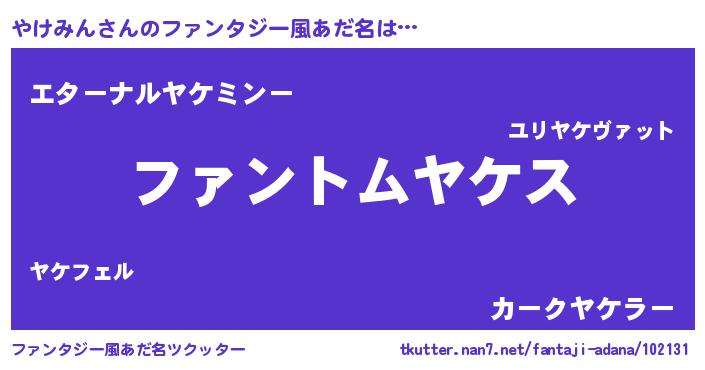| 意味不明あだ名 | 『とにかく怪しいやけみん』 |