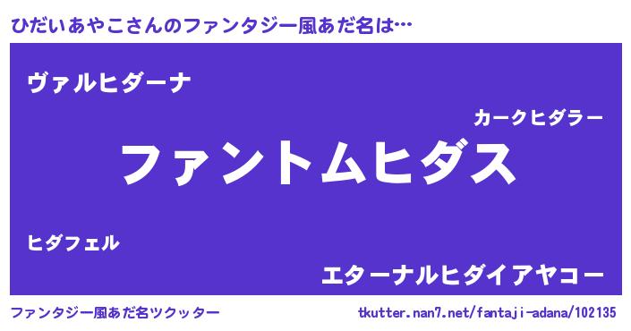 | 女子向けラノベタイトル風あだ名 | 『ひだいあやこは平凡を望む』 |