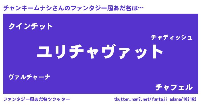 | 男性向けラノベタイトル風あだ名 | 『チャンキームナシ~年齢イコール彼女いない歴の魔法使い~』 |