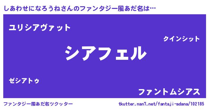 | 男性向けラノベタイトル風あだ名 | 『シアワセニナロウネアートオンライン』 |