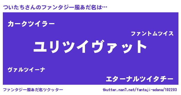 | 男性向けラノベタイトル風あだ名 | 『転生したらついたちだった件』 |
