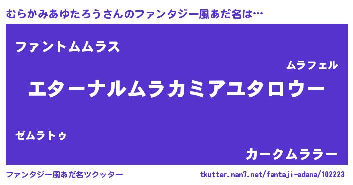 | 意味不明あだ名 | 『むらかみあゆたろうフォーエバー』 |