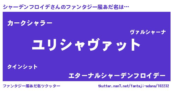 | 男性向けラノベタイトル風あだ名 | 『シャーデンフロイデ~年齢イコール彼女いない歴の魔法使い~』 |