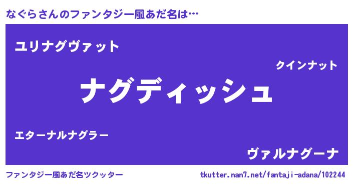 | 女子向けラノベタイトル風あだ名 | 『なぐらの契約王妃』『死神なぐらの再婚』 |