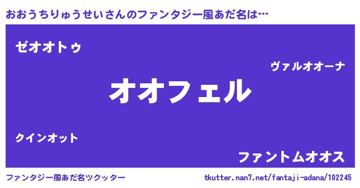 | 男性向けラノベタイトル風あだ名 | 『おおうちりゅうせいの憂鬱』 |