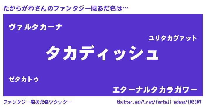 | ヒーロー風カッコイイあだ名 | 『ネオタカラガワ』『仮面タカダー』 |