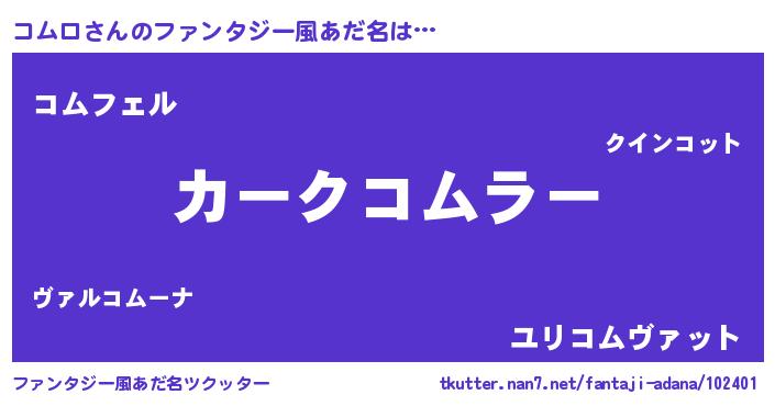 | ポケモン風あだ名 | 『コムゴンZ』『メロコッム』 |