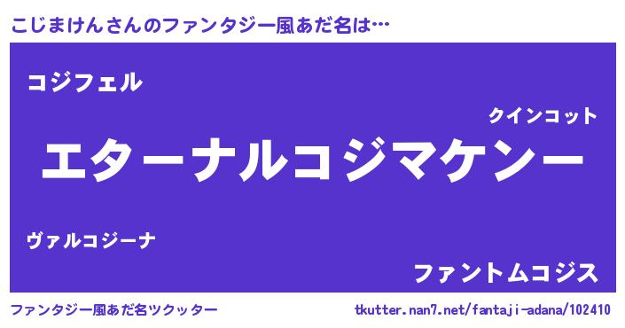 | 男性向けラノベタイトル風あだ名 | 『やはりこじまけんの青春ラブコメはまちがっている 』 |