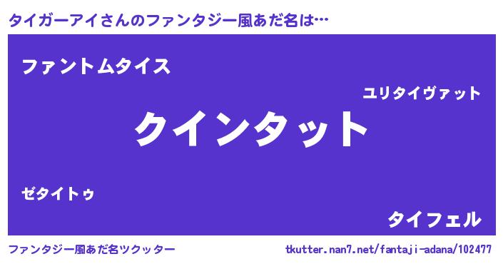 | 男性向けラノベタイトル風あだ名 | 『おまえをオタクにしてやるから、俺をタイガーアイにしてくれ! 』 |