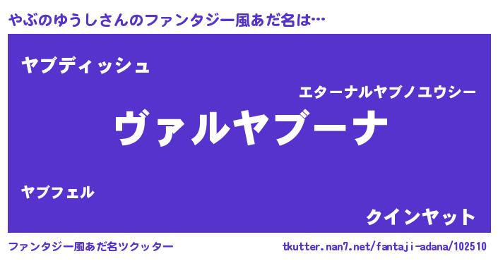 | 意味不明あだ名 | 『住所不定無職やぶのゆうし(39歳)』 |