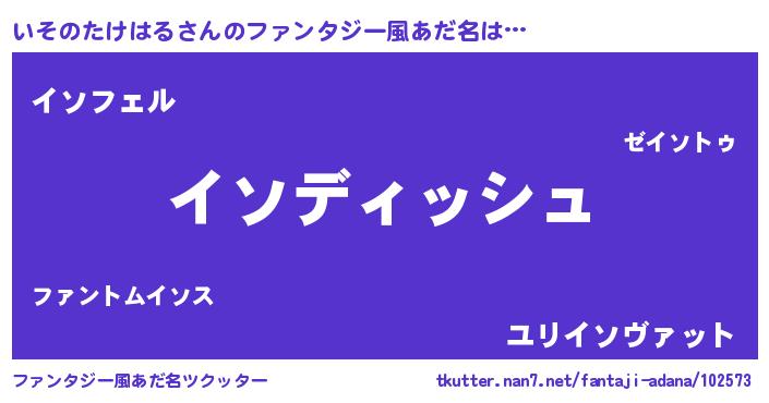 | 女子向けラノベタイトル風あだ名 | 『異世界で失敗しない100のいそのたけはる』 |