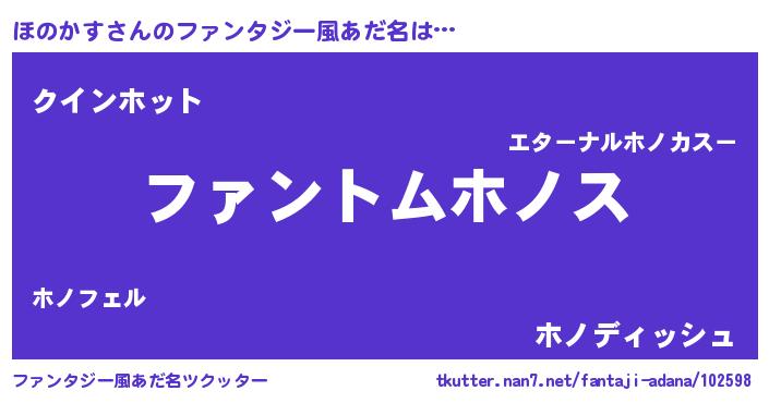 | 女子向けラノベタイトル風あだ名 | 『ほのかすは平凡を望む』 |