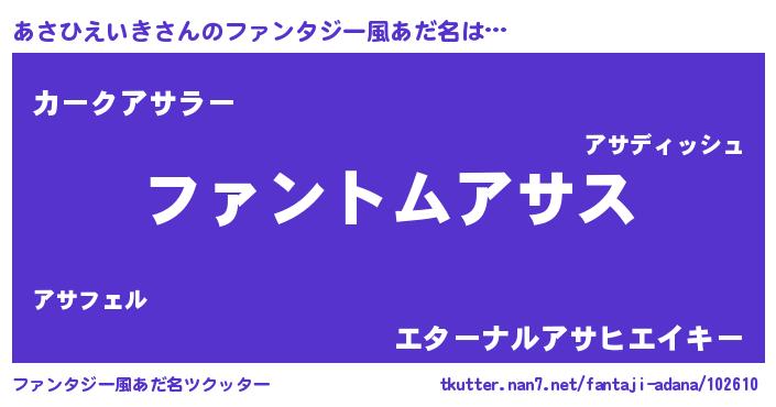| 男性向けラノベタイトル風あだ名 | 『あさひえいきの嫁は女の子じゃないと思った?』 |