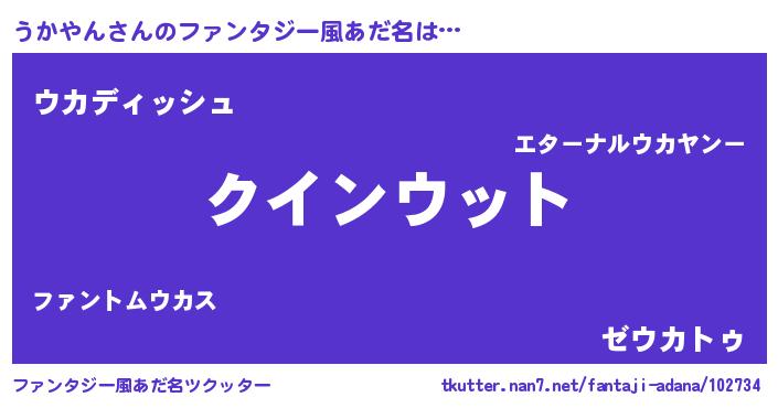 | 男性向けラノベタイトル風あだ名 | 『おまえをオタクにしてやるから、俺をうかやんにしてくれ! 』 |