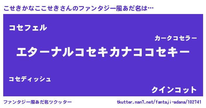 | 女子向けラノベタイトル風あだ名 | 『こせきかなここせきの雑貨屋さん』 |