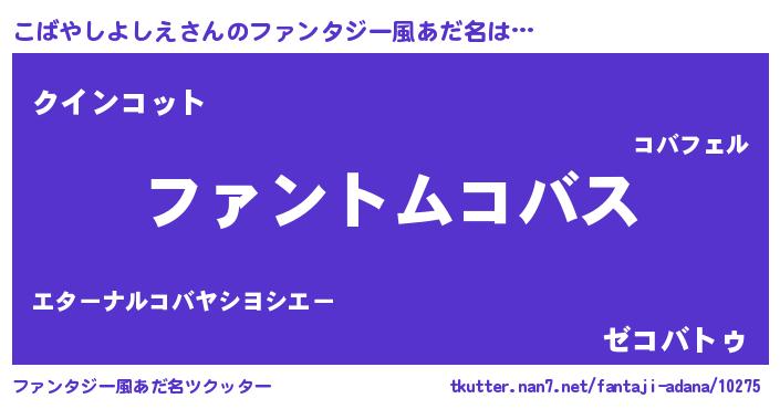 | 胡散臭い通販商品みたいなあだ名 | 『信頼と実績のサプリメント…その名も「こばやしよしえ」』 |