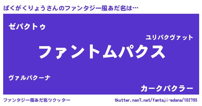 | 男性向けラノベタイトル風あだ名 | 『ダンジョンにぱくがくりょうを求めるのは間違っているだろうか』 |
