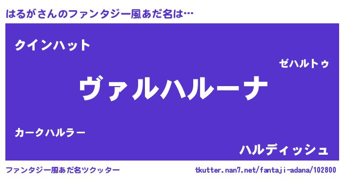 | 男性向けラノベタイトル風あだ名 | 『魔弾の王とはるが』 |
