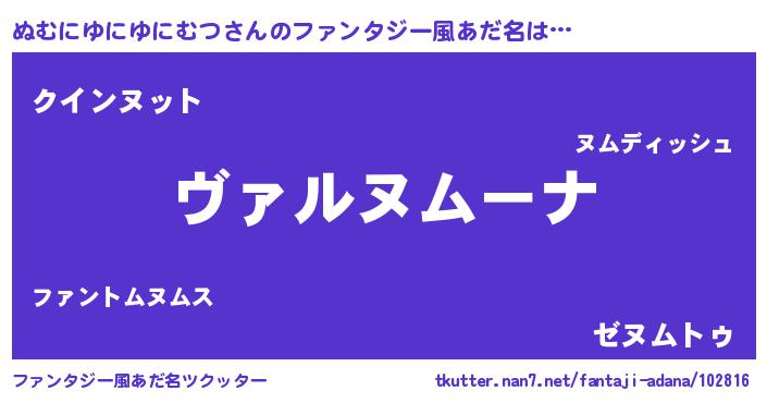 | 意味不明あだ名 | 『住所不定無職ぬむにゆにゆにむつ(81歳)』 |