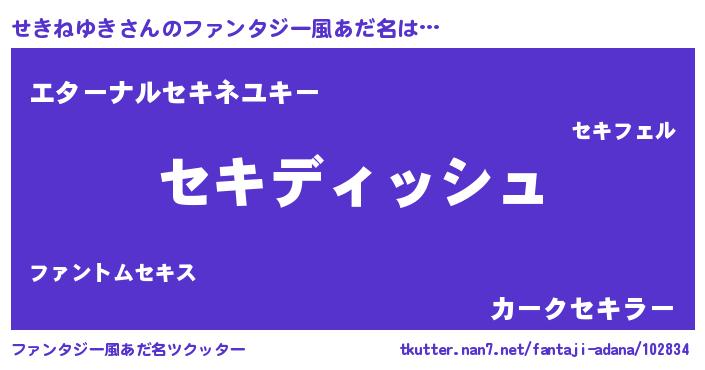 | 胡散臭い通販商品みたいなあだ名 | 『来世でも幸せになれる水素水…その名も「せきねゆき」』 |