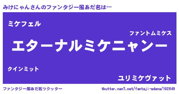| 意味不明あだ名 | 『みけにゃんフォーエバー』 |