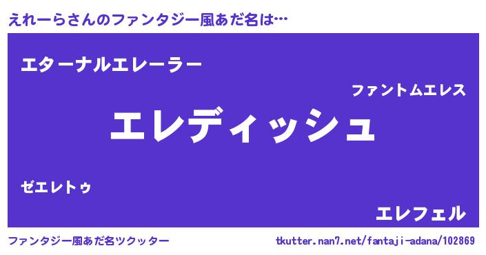 | 意味不明あだ名 | 『永久保存えれーら』『ペロリンえれーら』 |