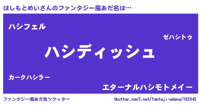 | ヘコむあだ名 | 『はしもとめい(小並感)』『はしふぇ~』 |
