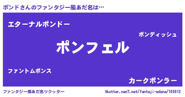 | ヒーロー風カッコイイあだ名 | 『スーパーポンド』『ウルトラポンドマン』 |