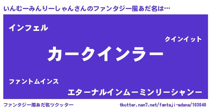 | ヒーロー風カッコイイあだ名 | 『スーパーインムーミンリーシャン』 |