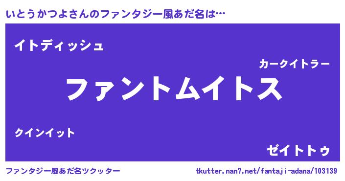 | 女子向けラノベタイトル風あだ名 | 『いとうかつよの卵を拾いまして』 |