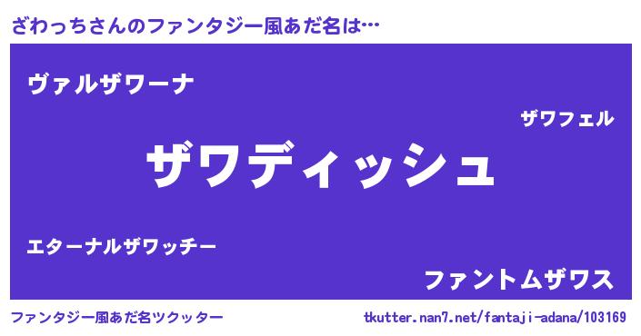 | 男性向けラノベタイトル風あだ名 | 『ざわっちという概念が存在しない退屈な世界 』 |