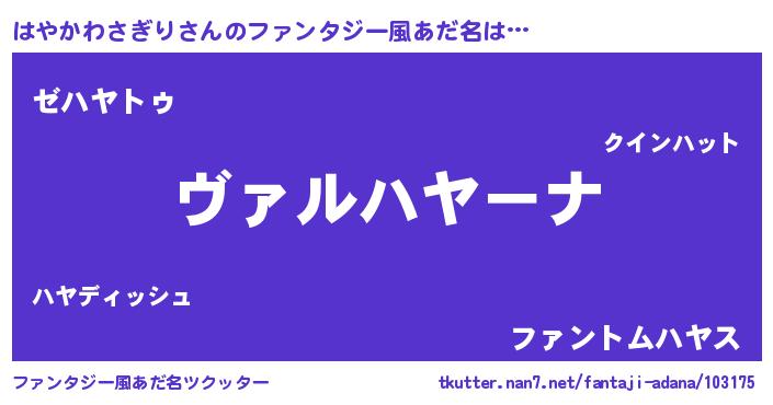 | 男性向けラノベタイトル風あだ名 | 『この素晴らしい世界にはやかわさぎりを!』 |