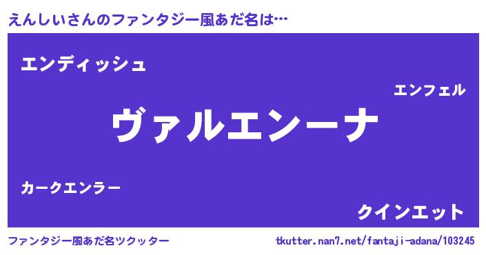 | 意味不明あだ名 | 『住所不定無職えんしい(98歳)』 |