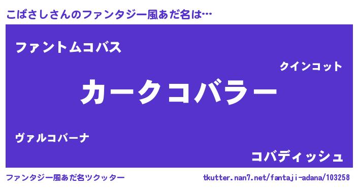 | ヒーロー風カッコイイあだ名 | 『銀牙騎士コバ』『ネオコバサシ』 |