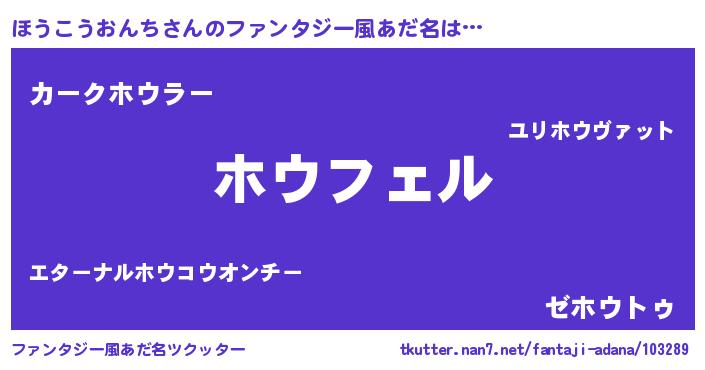 | 自動車の名前っぽいあだ名 | 『ホウティマ』『フェホーウ』 |