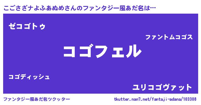 | 番長 | こごさざナよふあぬめ、またの名を・・・!『だいたいこごさざナよふあぬめにゃん』 |