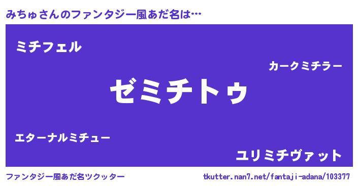 | 女子向けラノベタイトル風あだ名 | 『みちゅなんてお断りですっ。』 |