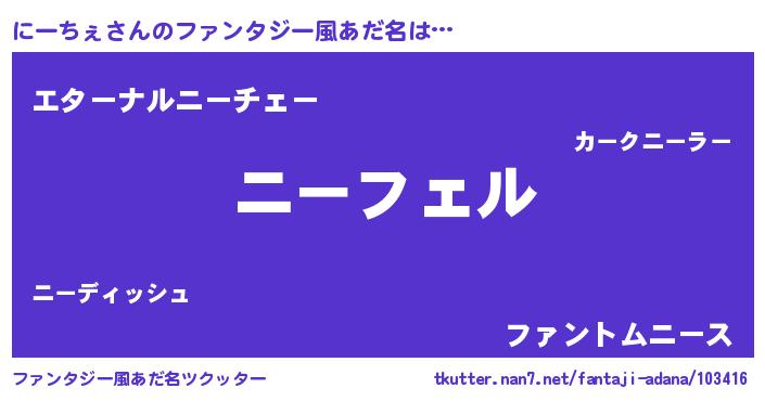 | ポケモン風あだ名 | 『ニーチュウ』『ニーチダネ』 |