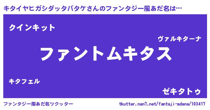 | 女子向けラノベタイトル風あだ名 | 『キタイヤヒガシダッタバタケの卵を拾いまして』 |