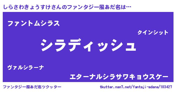 | 胡散臭い通販商品みたいなあだ名 | 『来世でも幸せになれる健康食品…その名も「しらさわきょうすけ」』 |
