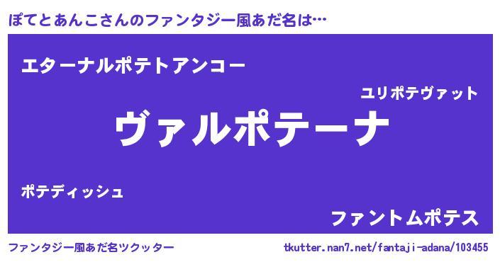 | 意味不明あだ名 | 『住所不定無職ぽてとあんこ(9歳)』 |
